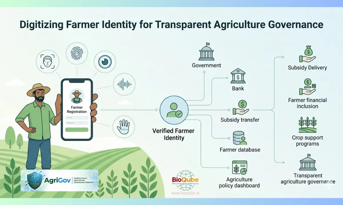 Digital identity infrastructure in agriculture refers to a secure, scalable system that uniquely verifies farmers, tracks agricultural activities, and enables transparent delivery of subsidies, credit, and services using biometric and AI technologies.